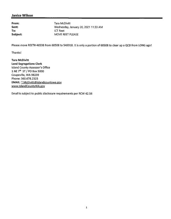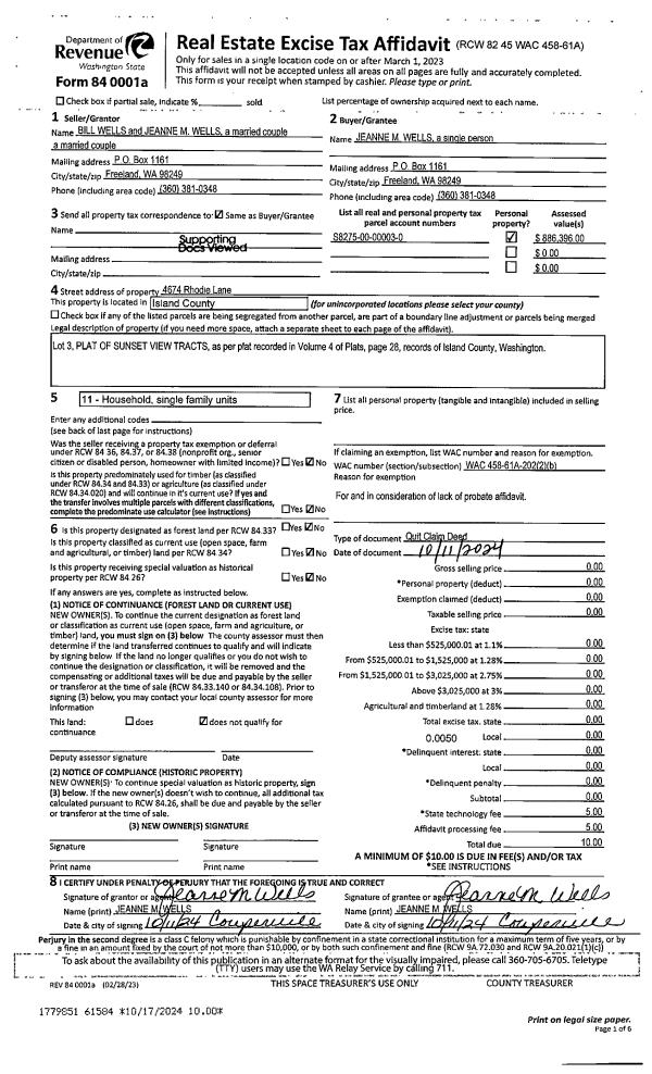 | 1 | 10/11/2024 | QCD | Quit Claim Deed | WELLS, BILL | WELLS, JEANNE M | | | $0.00 | 61584 | 4578301 |