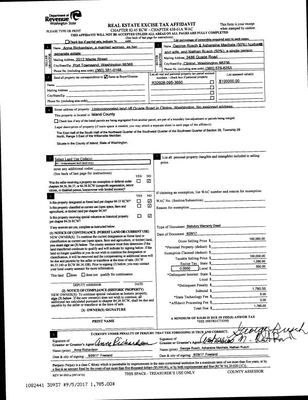 | 2 | 08/29/2017 | WD | Warranty Deed | RICHARDSON, ANNE | RUSCH, GEORGE | | | $100,000.00 | 30937 | 4429459 |