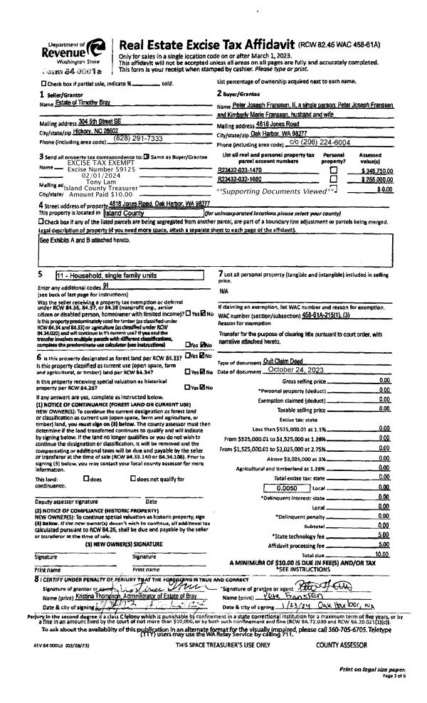 | 3 | 03/01/2010 | WD | Warranty Deed | BRAY, TIMOTHY C | BRAY, TIMOTHY C | | | $0.00 | 472 | 4269572 |
