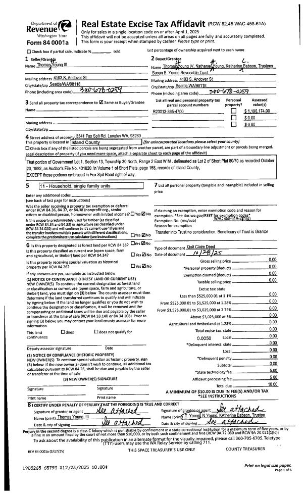 | 1 | 10/28/2025 | QCD | Quit Claim Deed | YOUNG III, THOMAS H | THOMAS H YOUNG III REVOCABLE TRUST | | | $0.00 | 65793 | 4594978 |