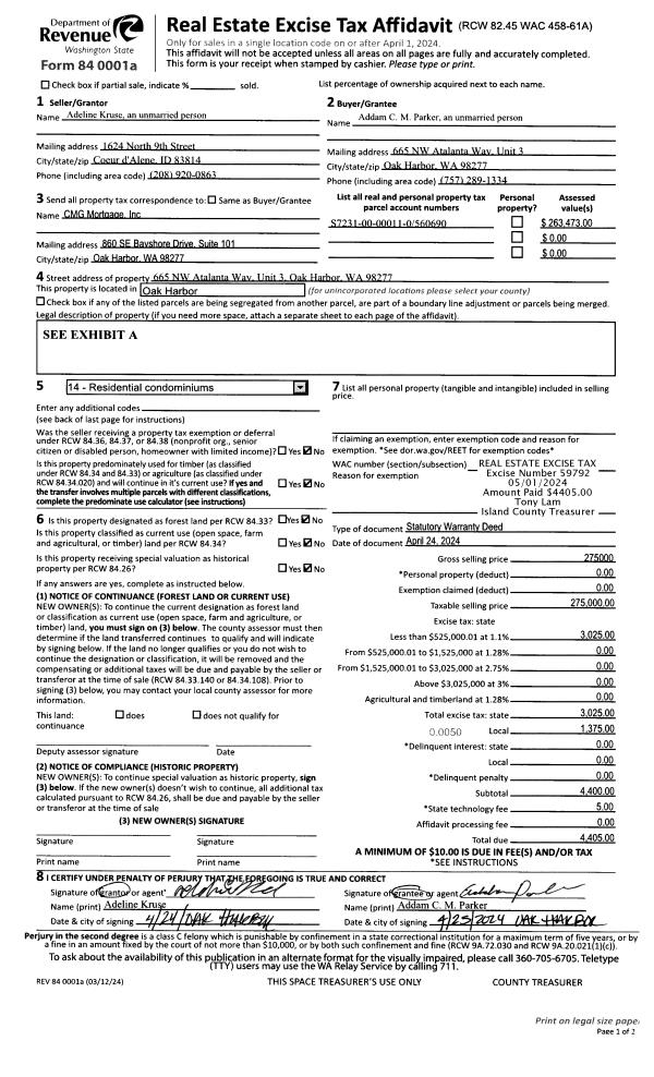| Mailing Address: | 665 NW ATALANTA WAY, UNIT 3 OAK HARBOR, WA 98277 | % Ownership: | 100.0000000000% |
