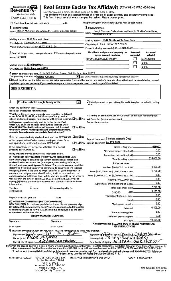 | 1 | 04/29/2022 | WD | Warranty Deed | GOULET, ROBERT M | CADWALLADER, JOSEPH SHERMAN | | | $635,000.00 | 53074 | 4544998 |