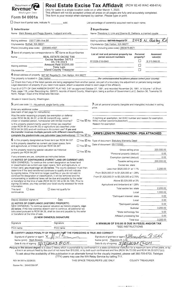 | 1 | 05/17/2023 | WD | Warranty Deed | BOWERS JTWROS, MARK | LINK, THEODORE H | | | $200,000.00 | 56753 | 4560094 |