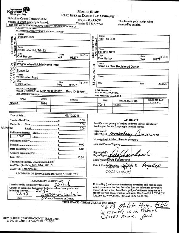| 2 | 06/12/2018 | MANHOME | Manufactured Home | FLAT TOP LLC | FLAT TOP, LLC | | | $0.00 | 34841 | 4447347 |