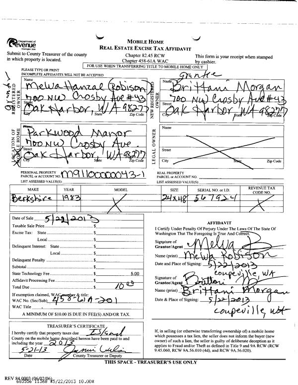 | Mailing Address: | 700 NW CROSBY AVE #43 OAK HARBOR, WA 98277 | % Ownership: | 100.0000000000% |