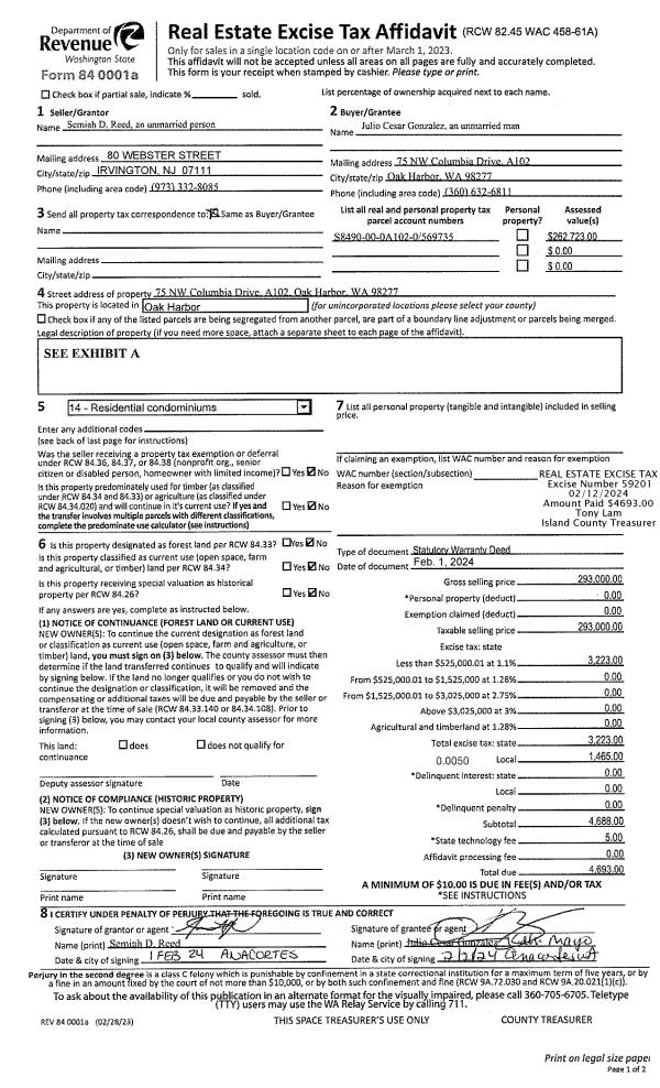 | Mailing Address: | 75 NW COLUMBIA DR, A102 OAK HARBOR, WA 98277 | % Ownership: | 100.0000000000% |