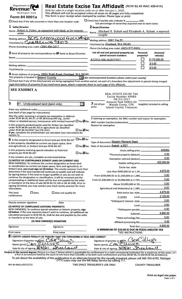 | 2 | 08/02/2021 | WD | Warranty Deed | FISHER, ROBERT ANDREW | SCHUTT, MICHEAL S | | | $425,000.00 | 49489 | 4526083 |