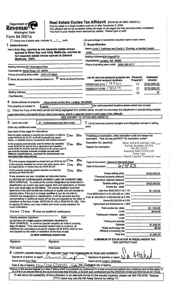 | Tax Area: | 700 - APPRAISER-S Whid Schl Dist, in town of Langley | Land Use Code | 91 |
