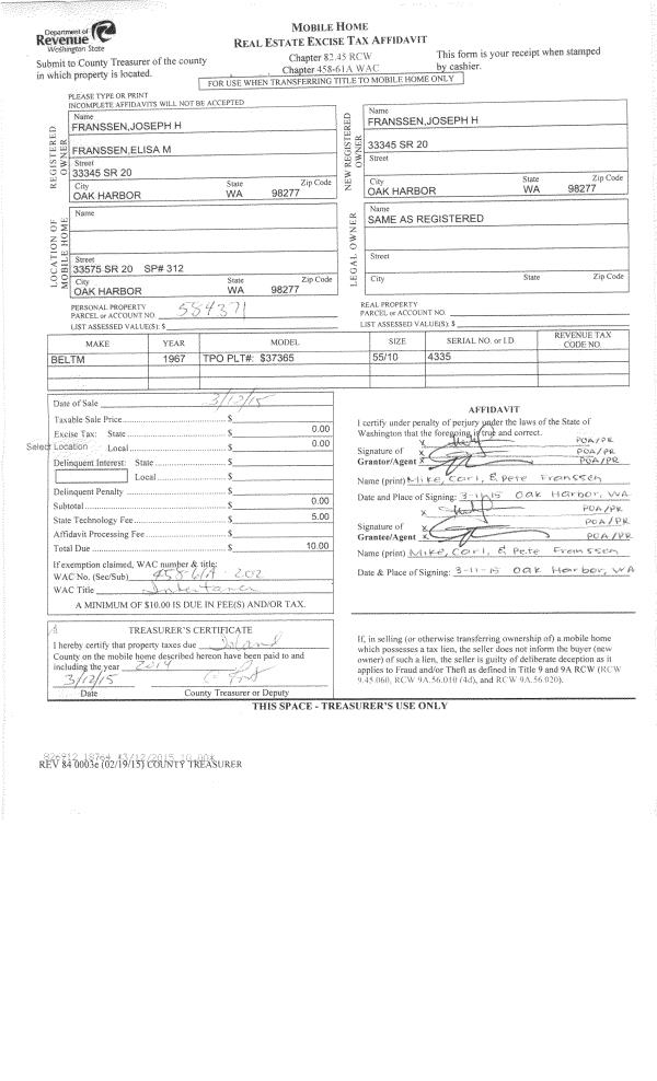 | Mailing Address: | 33345 STATE ROUTE 30 OAK HARBOR, WA 98277 | % Ownership: | 100.0000000000% |