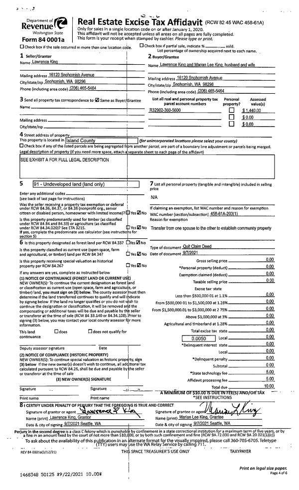 | 1 | 09/07/2021 | QCD | Quit Claim Deed | KING, LAWRENCE | KING, LAWRENCE | | | $0.00 | 50125 | 4529655 |