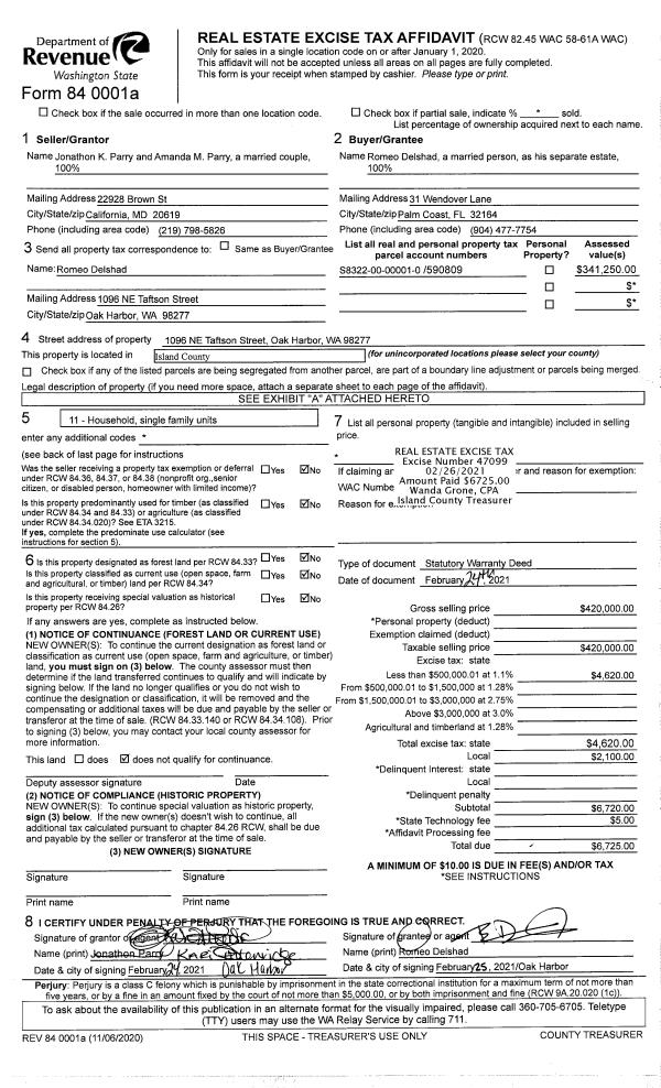 | 2 | 02/24/2021 | WD | Warranty Deed | PARRY, JONATHON K | DELSHAD, ROMEO | | | $420,000.00 | 47099 | 4512075 |