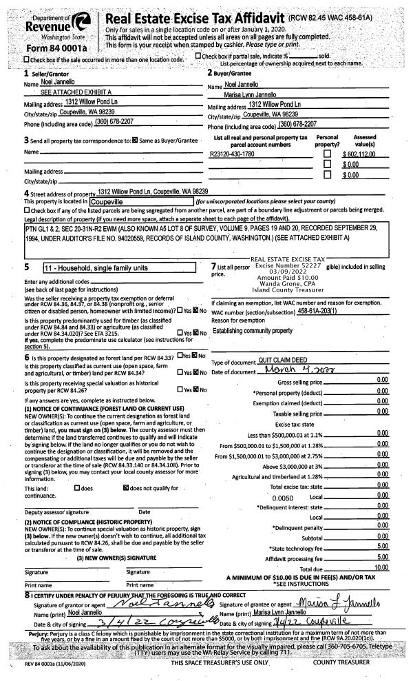 | 1 | 10/12/2022 | QCD | Quit Claim Deed | DISMORE, JAMES | DINSMORE TTEE, JAMES | | | $0.00 | 55230 | 4554234 |