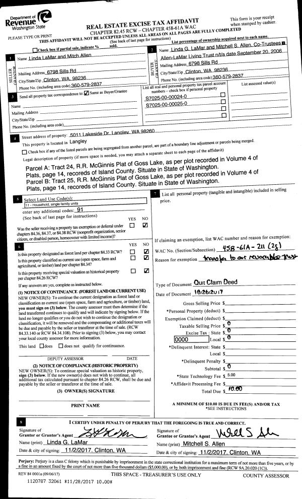 | Mailing Address: | TRELLA J. WITT TTEE 6506 HEGGENES RD CLINTON, WA 98236 | % Ownership: | 100.0000000000% |