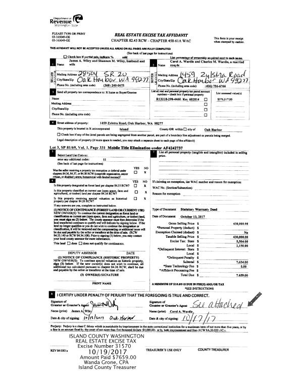 | 1 | 10/13/2017 | WD | Warranty Deed | WILEY, JAMES A | WARDLE, CAROL A | | | $430,000.00 | 31570 | 4432406 |