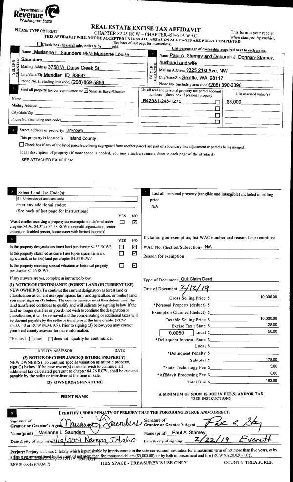 | 3 | 02/12/2019 | QCD | Quit Claim Deed | SAUNDERS, MARIANNE L | STAMEY, PAUL A | | | $10,000.00 | 37645 | 4459500 |