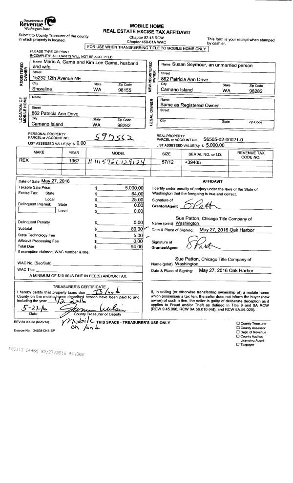 | Mailing Address: | 2777 OVERVIEW DR OAK HARBOR, WA 98277 | % Ownership: | 100.0000000000% |