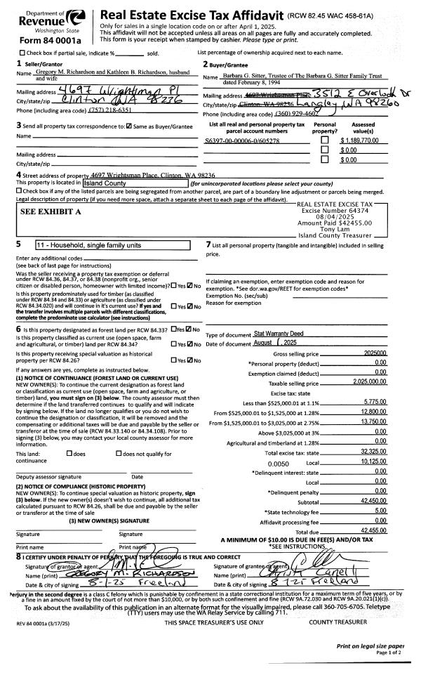 | 1 | 08/01/2025 | WD | Warranty Deed | RICHARDSON, GREGORY M | SITTER TTEE, BARBARA G | | | $2,025,000.00 | 64374 | 4589143 |