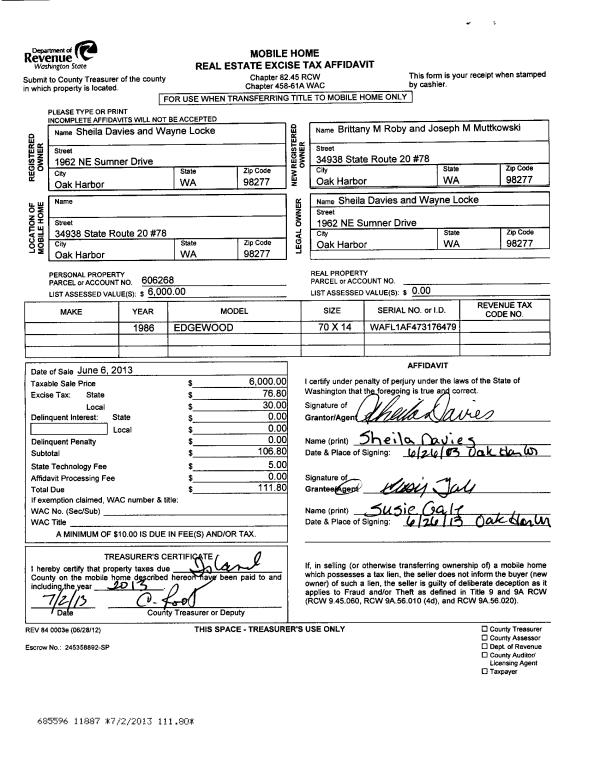 | Property ID: | 606268 | Abbreviated Legal Description: | 1986 EDGEWOOD 14X66 VIN# WAFL1AF473176479 TPO +43271 |
