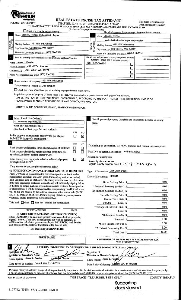 | 5 | 11/10/2015 | QCD | Quit Claim Deed | PENDER, JESSE L | PENDER, JESSE L | | | $0.00 | 35854 | 4451520 |