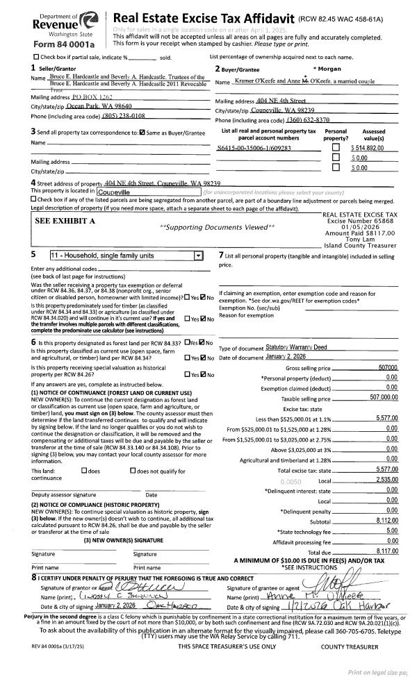 | 1 | 01/02/2026 | WD | Warranty Deed | HARDCASTLE TRUSTEE, BRUCE E | O'KEEFE, KRAMER | | | $507,000.00 | 65868 | 4595318 |