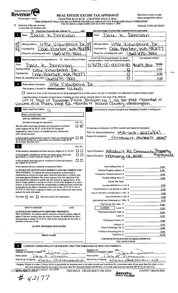 | 1 | 02/12/2020 | OTHER | Other - Misc. Documents | DONOVAN, RICHARD N | DONOVAN, DALE | | | $0.00 | 42177 | 4481714 |