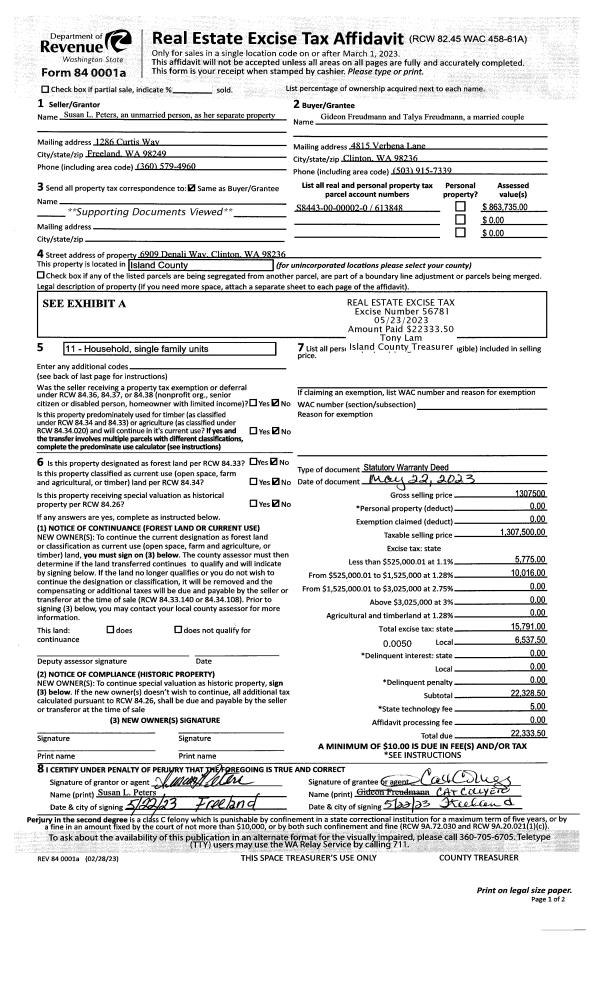 | Mailing Address: | TALYA FREUDMANN 6909 DENALI WAY CLINTON, WA 98236 | % Ownership: | 100.0000000000% |