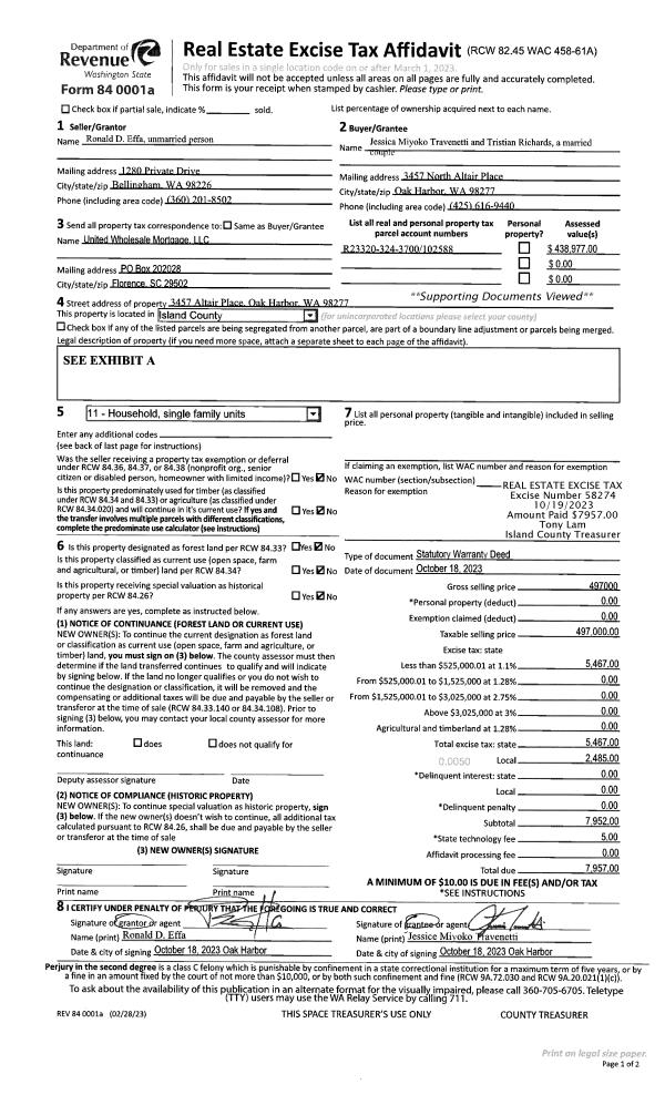 | Mailing Address: | SHELLEY R RICHARDSON 1174 SW KLICKITAT TER OAK HARBOR, WA 98277 | % Ownership: | 100.0000000000% |