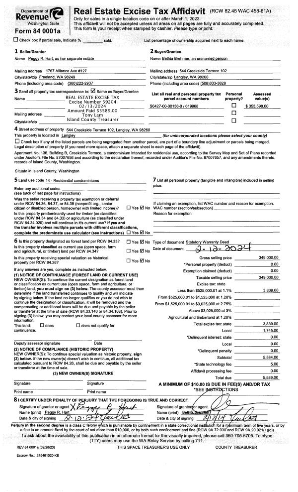 | 1 | 02/12/2024 | WD | Warranty Deed | HART, PEGGY R | BREHMER, BETHIA | | | $349,000.00 | 59204 | 4569389 |