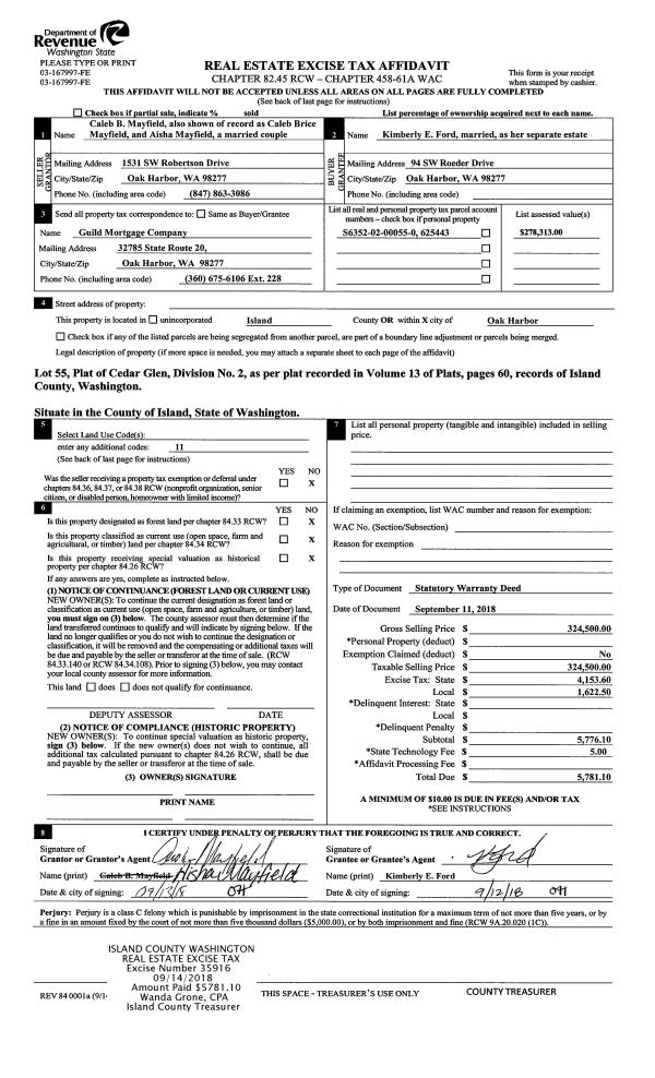 | 4 | 09/11/2018 | WD | Warranty Deed | MAYFIELD, CALEB B | FORD, KIMBERLY E | | | $324,500.00 | 35916 | 4451793 |