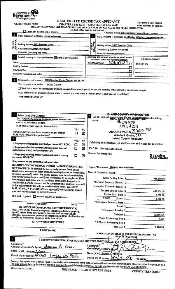 | Mailing Address: | MARILYN WILKINSON 3933 BRENDEN CIR CLINTON, WA 98236 | % Ownership: | 100.0000000000% |
