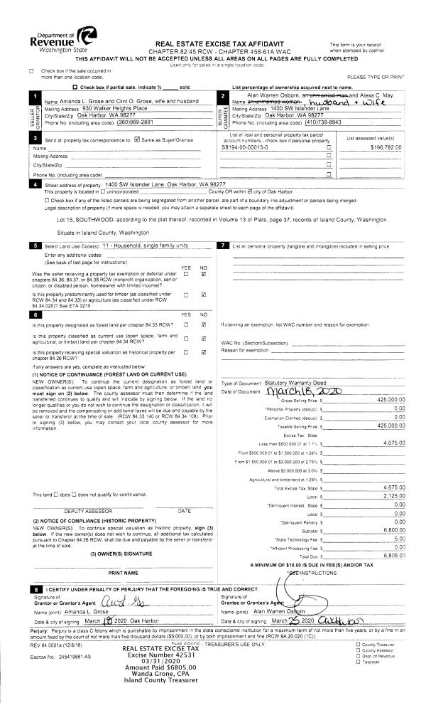 | Mailing Address: | SAMANTHA LEE MASSEY 513 NEPTUNE DR OAK HARBOR, WA 98277 | % Ownership: | 100.0000000000% |
