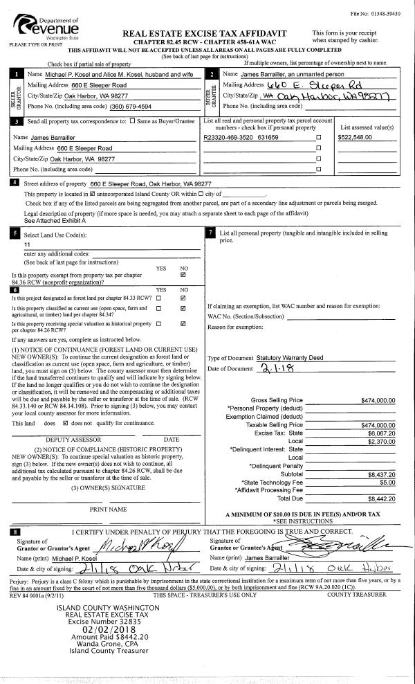 | Mailing Address: | 660 E SLEEPER RD OAK HARBOR, WA 98277 | % Ownership: | 100.0000000000% |