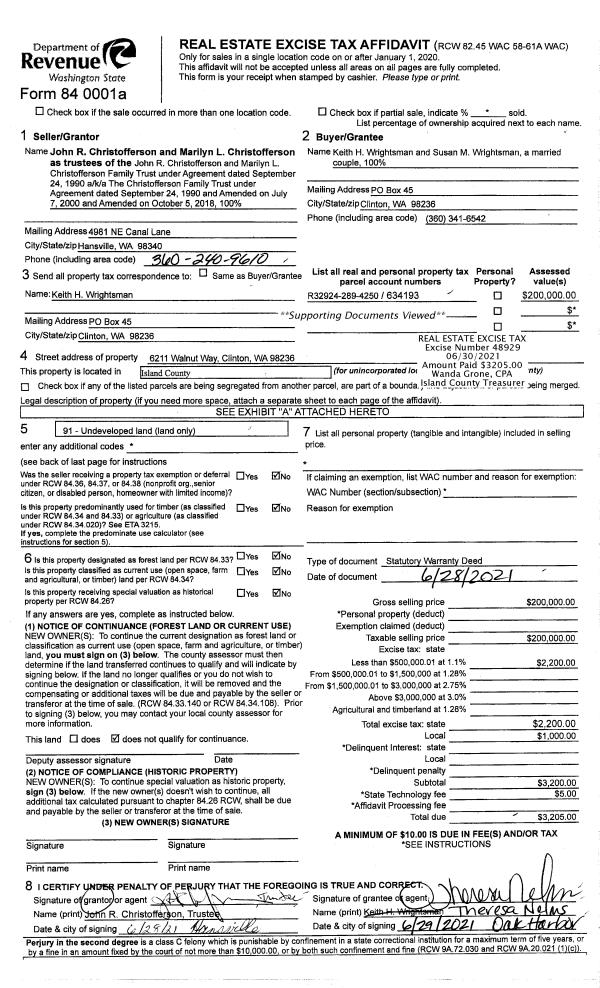 | Mailing Address: | SUSAN M WRIGHTSMAN PO BOX 45 CLINTON, WA 98236-0045 | % Ownership: | 100.0000000000% |