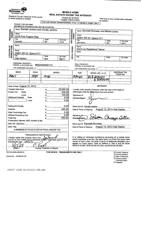 | Mailing Address: | 30901 SR 20 SPC D11 OAK HARBOR, WA 98277 | % Ownership: | 100.0000000000% |