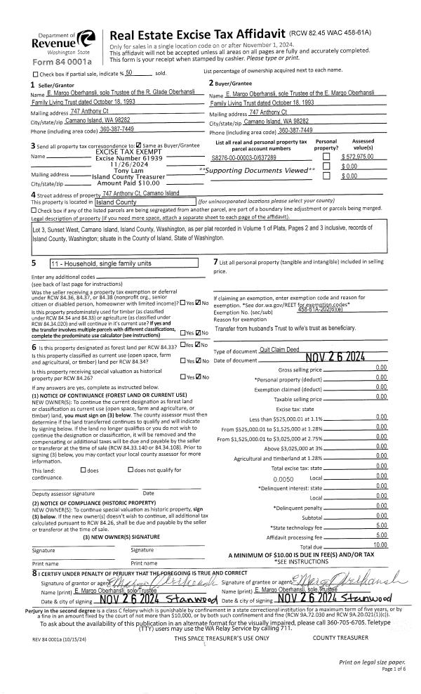 | 1 | 11/26/2024 | QCD | Quit Claim Deed | OBERHANSLI TTEE, E MARGO | OBERHANSLI TTEE, E MARGO | | | $0.00 | 61939 | 4579845 |