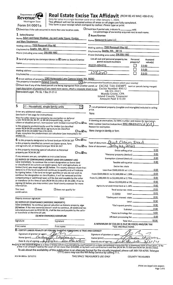 | Mailing Address: | 702 CATHEDRAL DRIVE COUPEVILLE, WA 98239 | % Ownership: | 100.0000000000% |