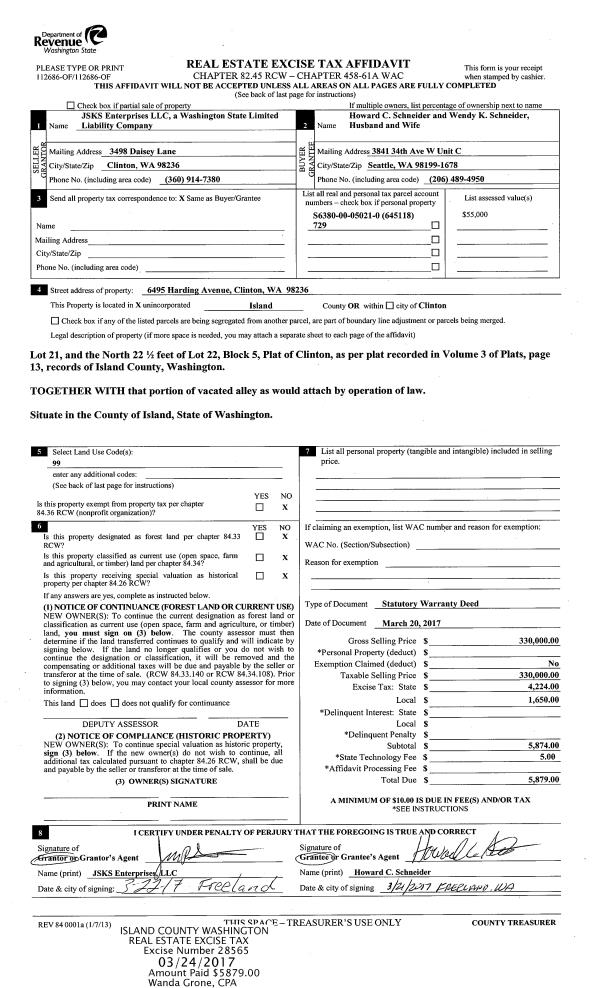 | 3 | 03/20/2017 | WD | Warranty Deed | JSKS ENTERPRISES, LLC | SCHNEIDER, HOWARD C | | | $330,000.00 | 28565 | 4419422 |