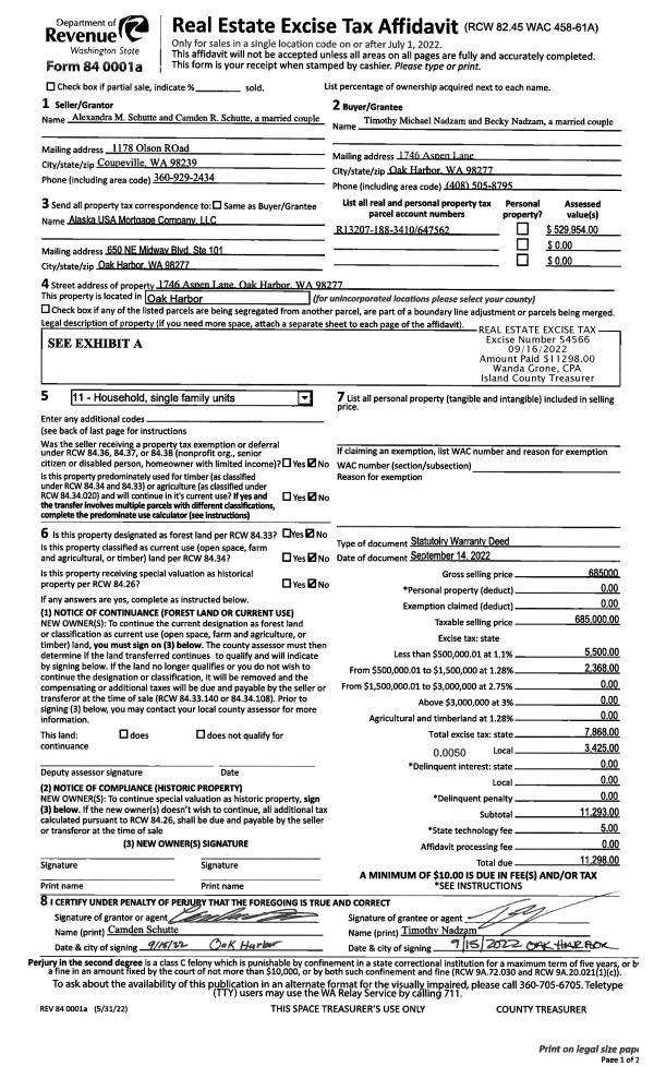 | Mailing Address: | BECKY NADZAM 1746 ASPEN LANE OAK HARBOR, WA 98277 | % Ownership: | 100.0000000000% |