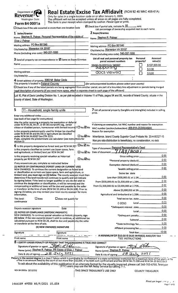 | Mailing Address: | 957 SW CAMANO DR CAMANO ISLAND, WA 98282 | % Ownership: | 100.0000000000% |