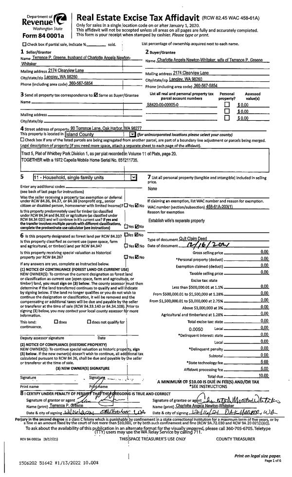 | Mailing Address: | DEBRA LYNN NELSON TTEE 230 TERESA ST CAMANO ISLAND, WA 98282 | % Ownership: | 100.0000000000% |