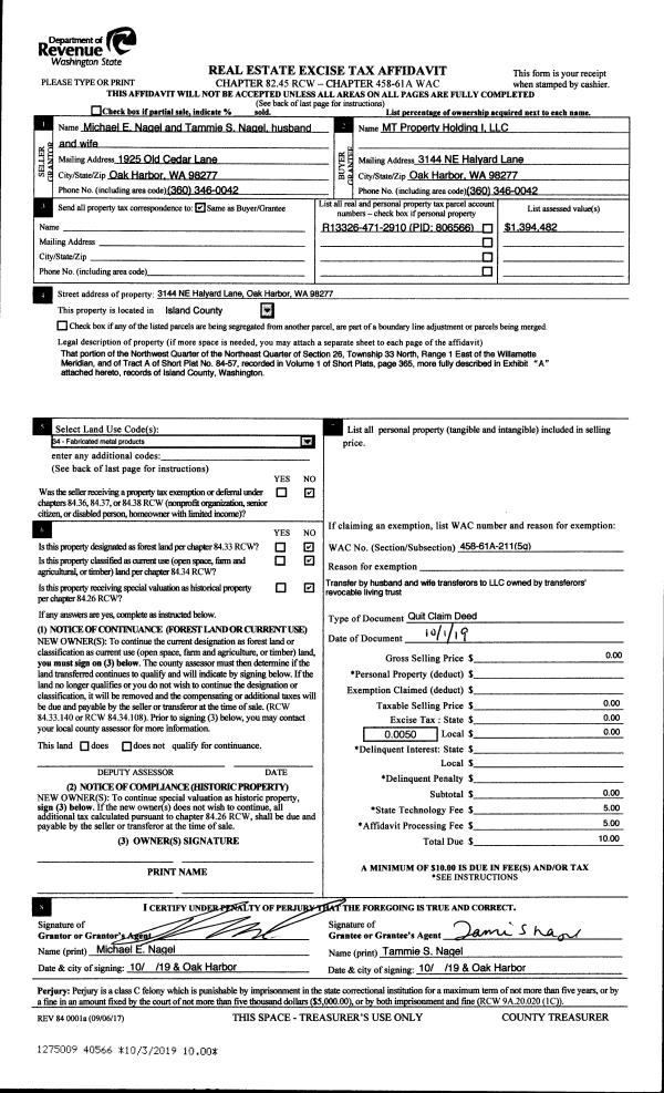 | Mailing Address: | GLENDA DURAN 1332 SETH DR CAMANO ISLAND, WA 98282 | % Ownership: | 100.0000000000% |
