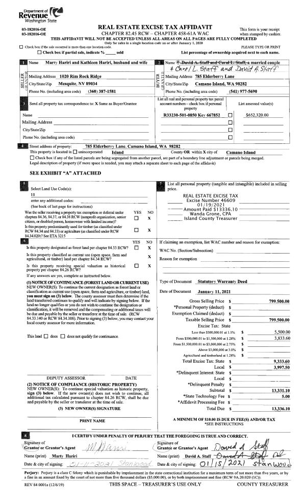 | 1 | 01/11/2021 | WD | Warranty Deed | HARIRI, MARTY | STAFF, CAROL L | | | $799,500.00 | 46609 | 4508439 |