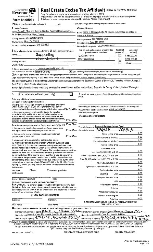 | 2 | 09/26/2024 | WD | Warranty Deed | CLEM, DIANE E | WHIDBEY CAMANO LAND TRUST | | | $1,650,000.00 | 61435 | 4577715 |