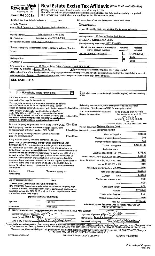 | 1 | 09/23/2024 | WD | Warranty Deed | SEVERSON, KEITH | CURTIS, RICHARD L | | | $1,298,000.00 | 61375 | 4577507 |