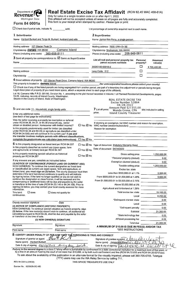 | 2 | 04/14/2022 | WD | Warranty Deed | BURKART, HERBERT | PERRY, JANICE KIM | | | $1,250,000.00 | 52864 | 4544162 |