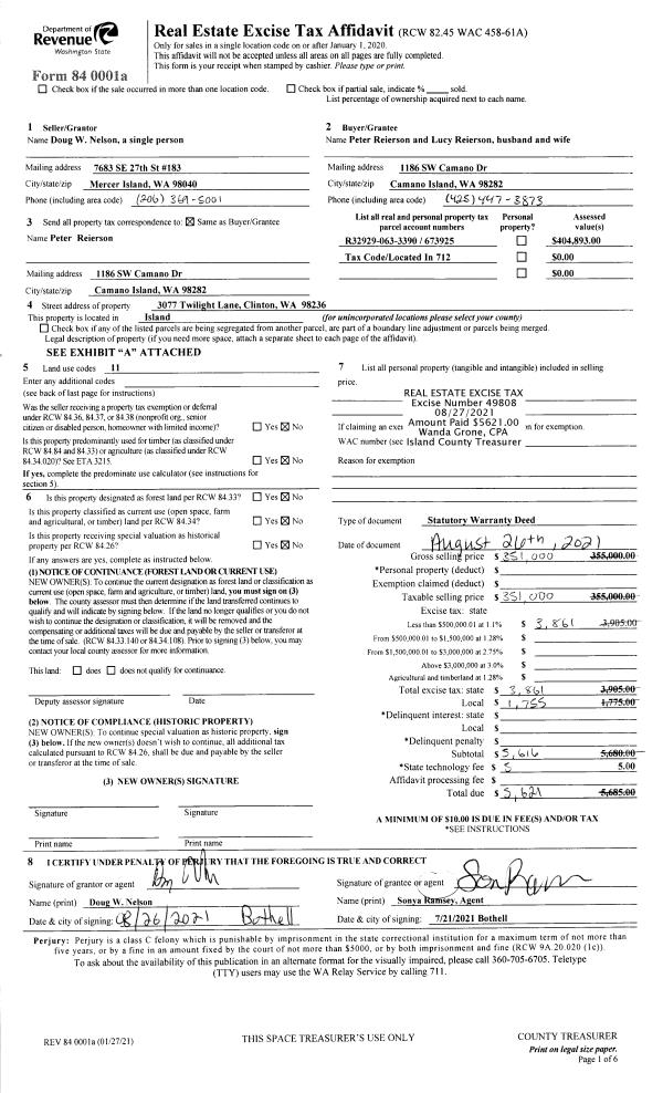 | 2 | 08/26/2021 | WD | Warranty Deed | NELSON, DOUGLAS W | REIERSON, PETER | | | $351,000.00 | 49808 | 4527833 |