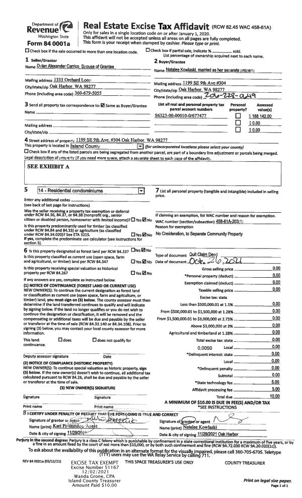 | 2 | 10/26/2021 | QCD | Quit Claim Deed | CARRICO, DYLAN ALEXANDER | KOWALSKI, NATALEE | | | $0.00 | 51167 | 4535050 |