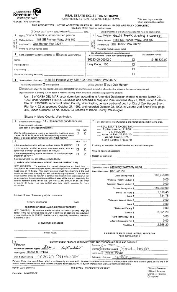 | 2 | 01/10/2020 | WD | Warranty Deed | ROLLINS, DONNA S | FOSTER, KRISTEN NICOLE | | | $146,950.00 | 41800 | 4479284 |