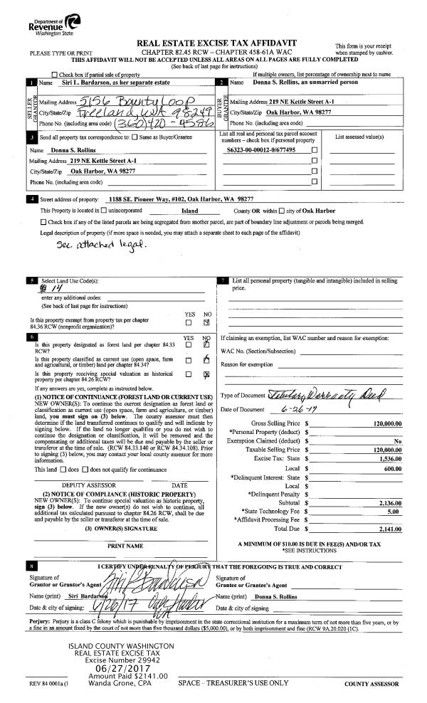| 3 | 06/26/2017 | WD | Warranty Deed | BARDARSON, SIRI L | ROLLINS, DONNA S | | | $120,000.00 | 29942 | 4425095 |