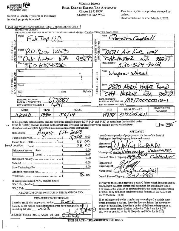 | 2 | 08/06/2023 | MANHOME | Manufactured Home | FLAT TOP LLC | CAMPBELL, QUENTIN | | | $5,000.00 | 57662 | |